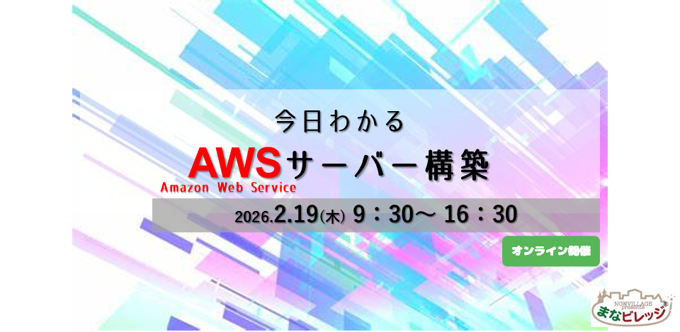 | 2026年2月19日(木) | 【オンライン開催】今日わかる AWS サーバ構築 | 1日 | 9:30~16:30 | ¥33,000(税込) |