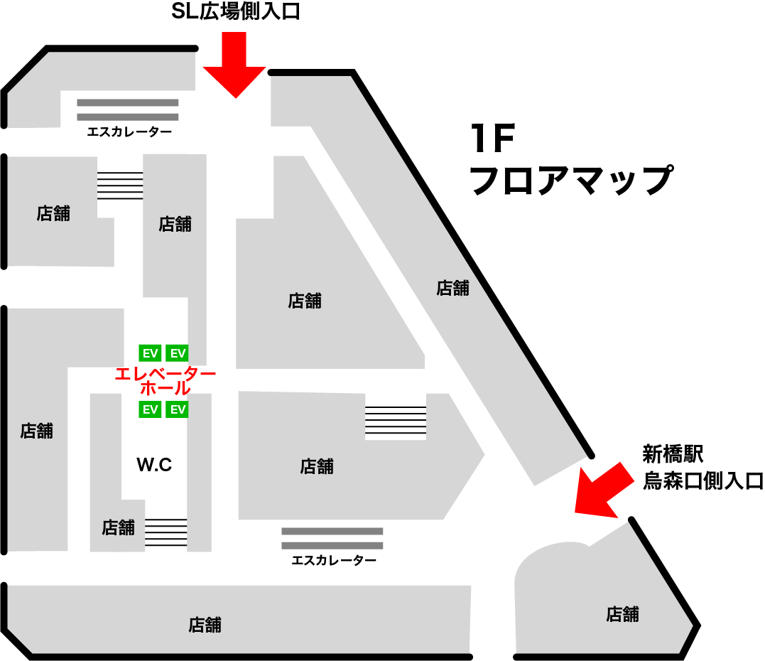 JR新橋駅下車、SL広場口または烏森口徒歩1分のニュー新橋ビルに入ります。